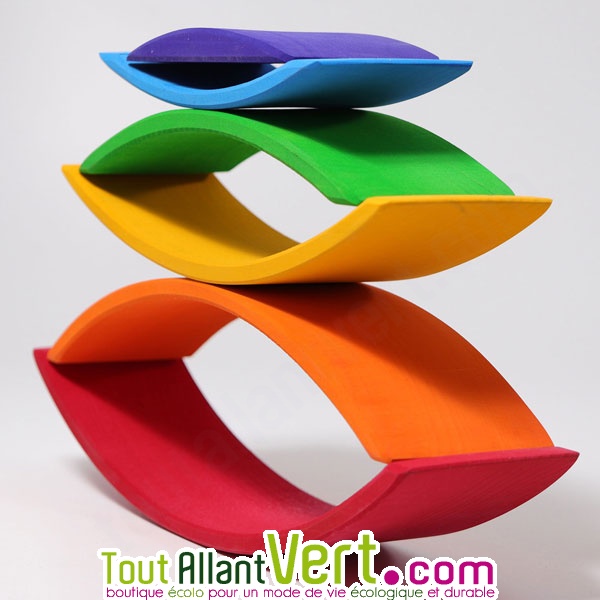 Pont en bois arc en ciel empilable, 6 pièces, 41 cm.- 6 pièces pour faire des ponts ou construction