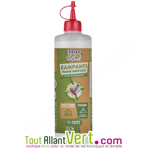 Anti-insectes rampants : cafards, punaises de lit, fourmis, araignées, poux des poules... Prêt à l'emploi, la terre de diatomée se répand pour éliminer les insectes rampants. Naturel et efficace. Marque Aries. 100 grammes.