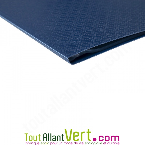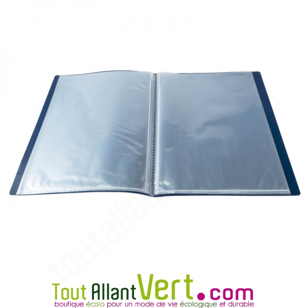 Protège documents recyclé. Disponible en 4 couleurs au choix et 4 tailles : 20, 30, 40 ou 50 pochettes. Pour feuilles A4. Fabriqué en France. Aspect plastifié, la couverture est semi-rigide et solide.