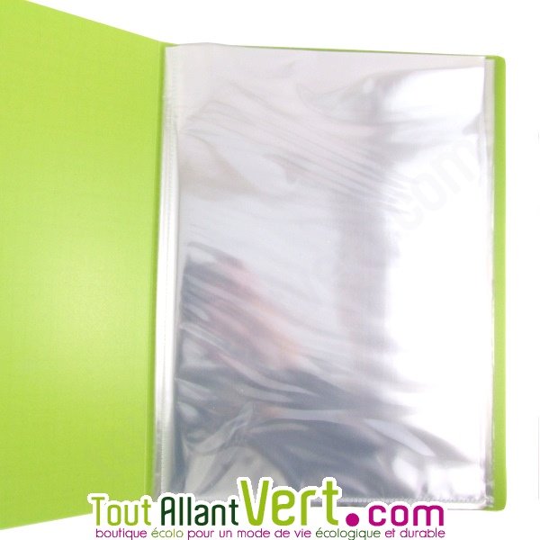 Ce protège documents, aussi appelé porte-vues, est en polypropylène recyclé. D'un aspect plastifié, la couverture semi-rigide possède un grain pour sublimer son aspect naturel. Les couleurs sont vives et lumineuses. Solides, les pochettes très transparentes en polypropylène serviront longtemps !