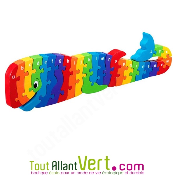 Puzzle Alphabet Baleine en bois colorée de A à Z