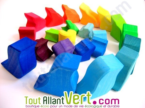 Le bois est un matériau idéal de jeu pour les enfants. Il est parfois doux, parfois un peu graineux, il sent bon... Les sensations au toucher ne sont jamais les mêmes, on ne s'en lasse pas !