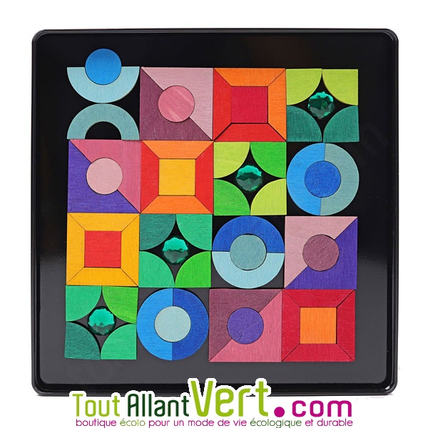 de GrimmsPuzzle créatif magnétique Triangle, rond et carré en bois. Bois naturel Couleur à base d'eau non toxique Dans une belle boite noire magnétique emportable partout Dimensions de la boite: 20 x 20cm Pour les enfants de 8 ans et + mais aussi pour les adultes. Origine : Allemagne Le puzzle magnétique est comme une image vivan...Ce produit ne fait plus partie de notre catalogueCet article n'est plus disponible à la vente chez nous.Découvrez d'autres produits