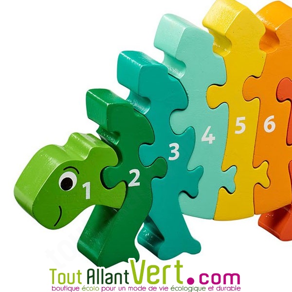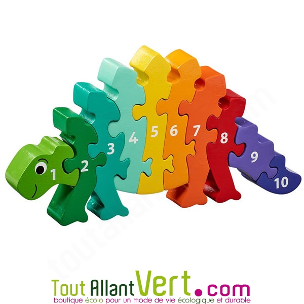 Puzzle dinosaure en bois avec nombre de 1 à 10.- Dès 3 ans