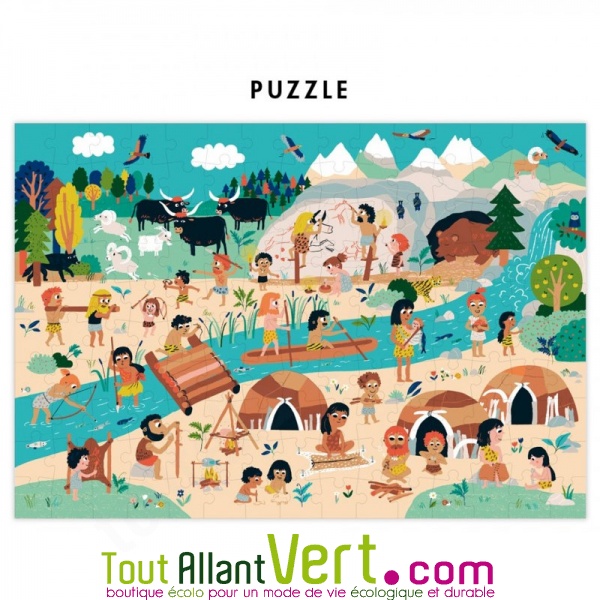 Splendide puzzle représentant l'époque de la préhistoire, les activités et le quotidien des Hommes de l'époque. Il est accompagné de son poster, fait pour aider votre enfant à accomplir entièrement le puzzle en liant les scènes d'aujourd'hui à celles de la préhistoire. Parfait pour travailler sa dextérité et sa patience !