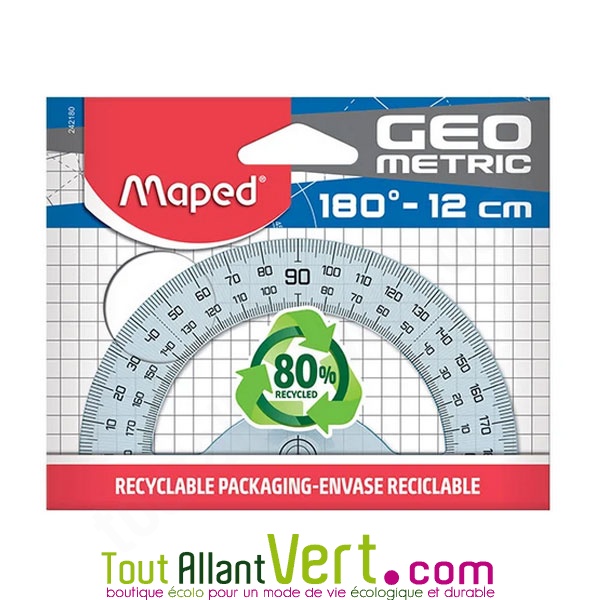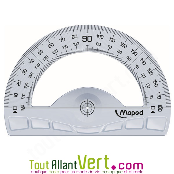 Ce rapporteur en plastique recyclé. Gradué de 0 à 180 permet une grande précision et possède un repère optimisé au centre pour ne jamais se tromper.