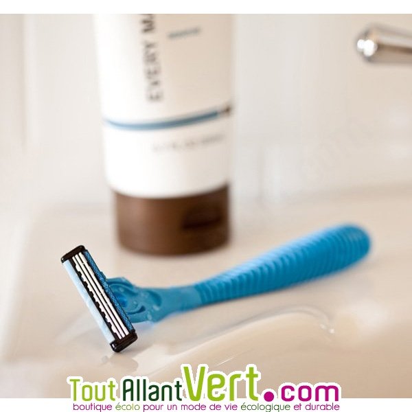 Ce rasoir écologique a été éco-conçu. Il est 100% recyclable, fabriqué à partir de pots de yaourts en plastique recyclé, sans Bisphénol A.Coloris: Bleu Clair.