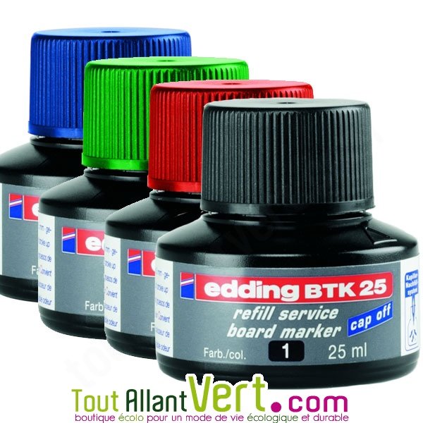 - Ley N.posté sur AVIS-VERIFIES14/09/2015Recharge d'encre noir pour marqueurs effaçables noir Edding 28, BTK25Idéal pour avoir un marqueur avec des couleurs toujours vives, sans mauvaises odeurs