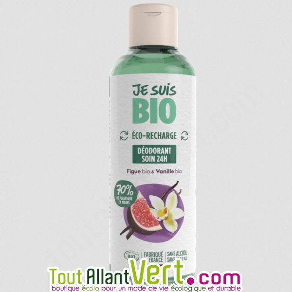 de Je Suis BIORecharge déodorant roll on figue et vanille.Parfum 100% d'origine naturelle. Certifié Cosmétique bio 100ml. Fabriqué en France. Marque Je suis bio.
