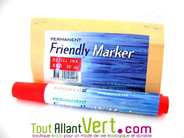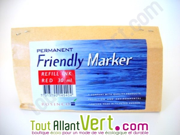 Recharge encre permanente à l'eau Sans solvant Encre rouge 30 ml Labellisé "Nordic Ecolabel" (Suède)Cette recharge pour marqueur à encre permanente vous permet de recharger jusqu'à 8 fois votre marqueur : moins de déchets et plus d'économie ! Ensuite, il vous suffit d'acheter une nouvelle recharge.Lire la suite...Livraison pour Noël garantie en choisissant Chronorelais pour toute commande payée jusqu'au mardi 23/12 11h00.