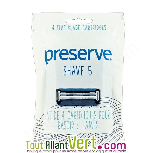 4 Recharges de rasoir recyclé 5 lames de Preserve