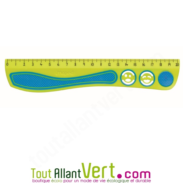 Cette règle de 20 cm est flexible. Ecologique, elle est recyclée à 63%. Idéal école avec grip anti-dérapant qui empêche la règle de glisser sur le papier lors du traçage. Parfait pour apprendre à faire de beaux traits. Colorées, elles sont attirantes pour les enfants. Graduée en cm sur 1 côté.