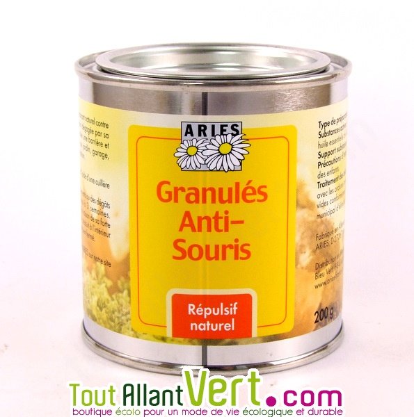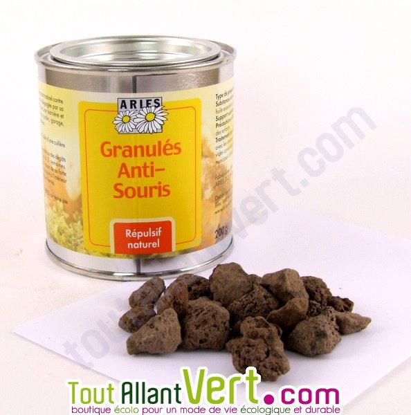- Tout Allant VertLes granulés anti-souris sont composés de pierres de lave imbibés d'extrait de plantes (une très forte concentration en extraits d'ail), ils ne sont pas très attrayants pour les animaux domestiques et de basse cour. Cependant, la pierre de lave ne se digère pas et les granulés étant plus au moins de la taille d'un noyau d'olives, il faut éviter d'éventuelles ingestions accidentelles, notamment par les poules. Il vaut mieux donc mettre les granulés hors de portée des animaux domestiques pour la tranquilité d'esprit.