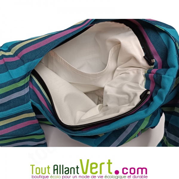 Sac Bandoulière à rayures bleu et vert en Coton Bio