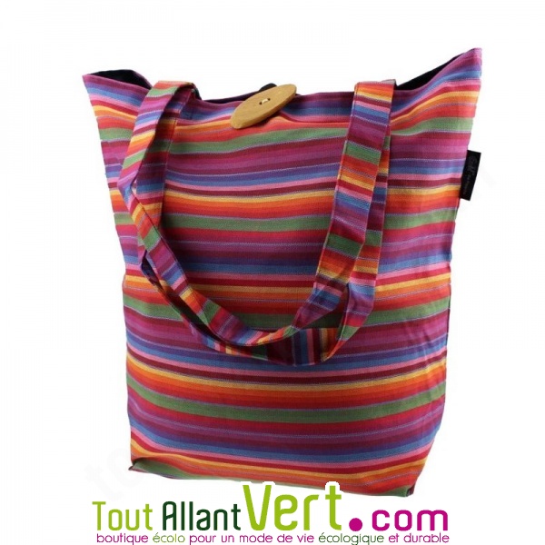 Sac cabas à anses en toile à rayures colorées en coton Bio