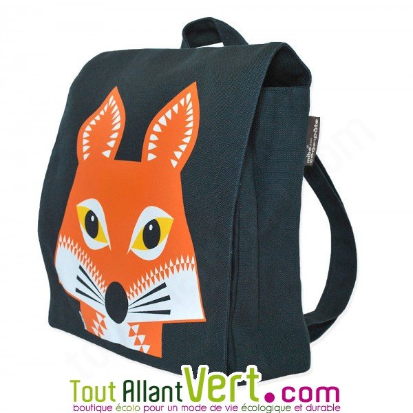 Sac à dos Renard en coton 100% biologique couleur orange et ardoiseAvec sa belle illustration de renard orange sur fond ardoise, ce sac à dos est idéal pour les enfants! On y glisse les fournitures scolaire, le goûter, le change, le doudou... Il est réalisé en coton bio et entièrement doublé. Ses deux bretelles sont réglables pour s'ajuster à la taille et l'âge de l'enfant. Vous trouverez une petite poche à l'intérieur. Fermeture par 2 boutons aimantés qui permettent au sac de se fermer seul.