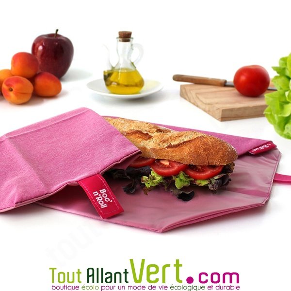 Une housse Rose pour sandwich vraiment pratique pour emporter son repas: Réutilisable, lavable en machine, ajustable, compact, elle se glisse dans la poche une fois le repas mangé. Finis les emballages jetables. Coloris au choix. 50% Coton et 50% Polyester (aspect plastifié facilement lavable à l'intérieur).
