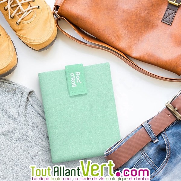 Une housse Vert mente pour sandwich vraiment pratique pour emporter son repas: Réutilisable, lavable en machine, ajustable, compact, elle se glisse dans la poche une fois le repas mangé. Finis les emballages jetables. Coloris au choix. 50% Coton et 50% Polyester (aspect plastifié facilement lavable à l'intérieur).