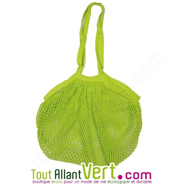 Sac filet à provisions avec longues anses, coton bio, vert