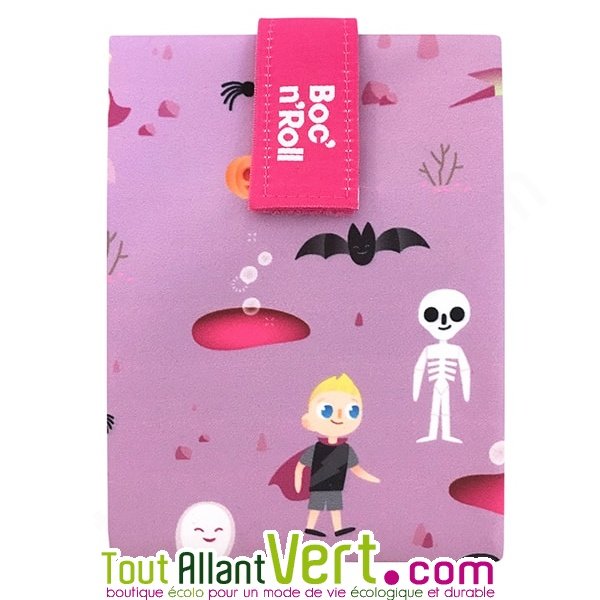 Réutilisable, lavable en machine, ajustable, compact, cette housse pour sandwich est vraiment pratique pour emporter son repas. Fine, elle se glisse dans la poche une fois le repas mangé. Finis les emballages jetables. Coloris rose, dessin halloween.