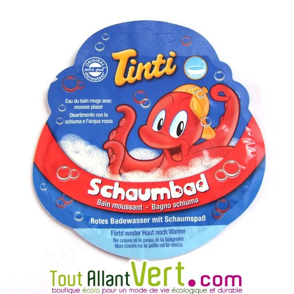 de TintiSachet de bain moussant rouge. Pour un bain rigolo, une eau colorée et plein de mousse. Sachet individuel de 20ml. Ne colore ni la peau ni la baignoire. Marque Tinti