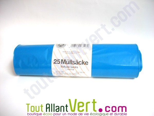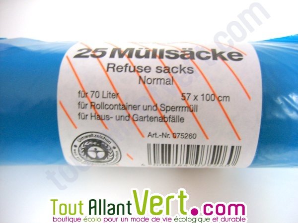 Sacs poubelle recyclés "Ange bleu" 70 litres, lot de 25