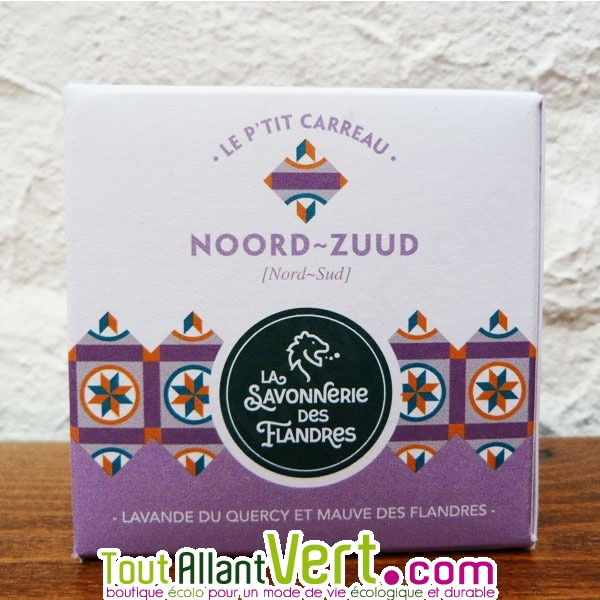 Ce savon NOORD~ZUUD signifie en flamand "Nord-Sud". Il tire son nom de la rencontre entre la mauve des flandres (Nord) et la lavande du Quercy (Sud).