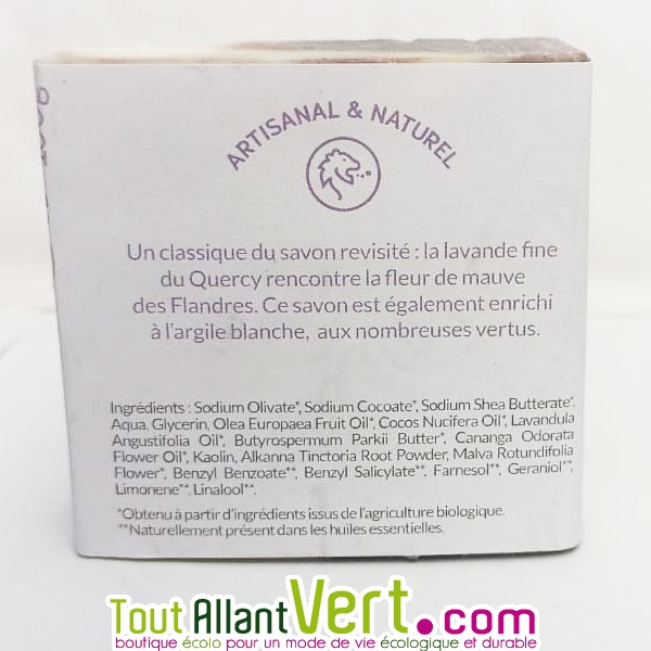 Enrichi à l'argile blanche, ce savon est une rencontre entre lavande fine de Quercy, mauve des flandres et senteur d'Ylang Ylang Bio. Un classiuqe revisité qui lave en douceur corps et visage.