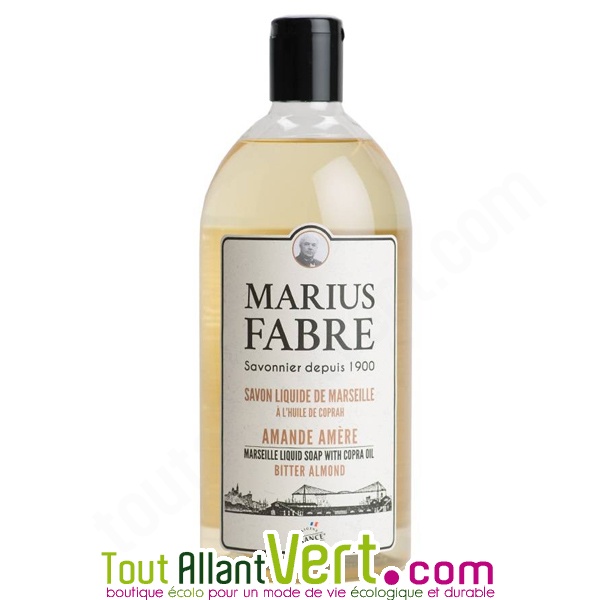 Fabriqué à base d'huile de coprah, ce savon liquide Marius Fabre est cuit au chaudron selon la méthode traditionnelle de Marseille. Il est parfumé à l'amande amère, une senteur plutôt féminine.- Nettoie tous types de peau en douceur