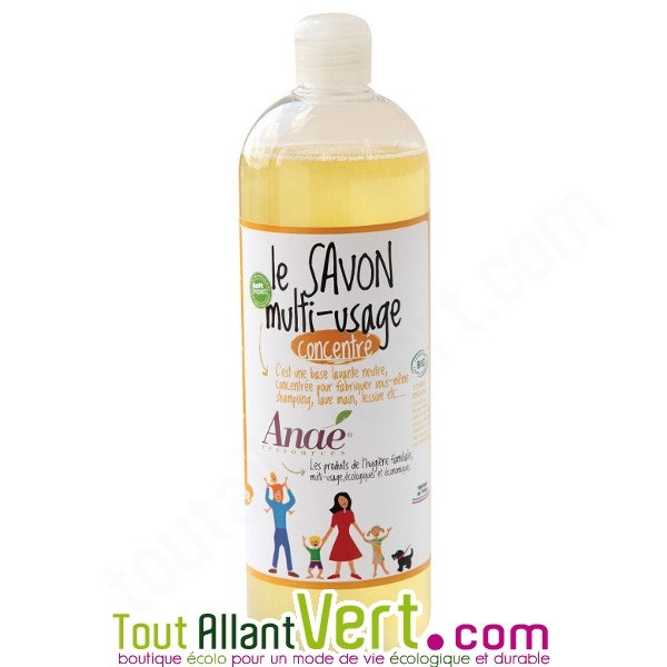 Savon liquide concentré multi-usage, 1 LitreTrès pratique, ce savon est une base lavante neutre qui peut être utilisé en l'état ou personnalisé selon vos goûts. Il peut aussi bien être utilisé en tant que savon lave-mains, de lessive ou de savon liquide de ménage.