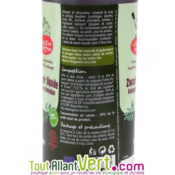 Prix de Savon Noir liquide Huile d'olive et tournesol bio, nettoyant multi-usages 1 litre : 7.35€ au lieu de 9.80€ Remise de -25%A propos du fabricant