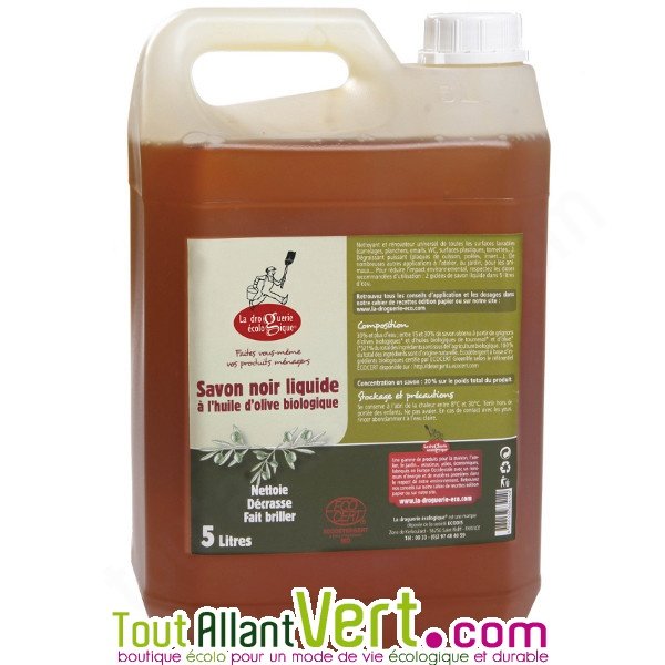 Prix de Savon Noir liquide Huile d'olive et tournesol bio, nettoyant multi-usages 5 litres : 32.18€ au lieu de 42.90€ Remise de -25%A propos du fabricant