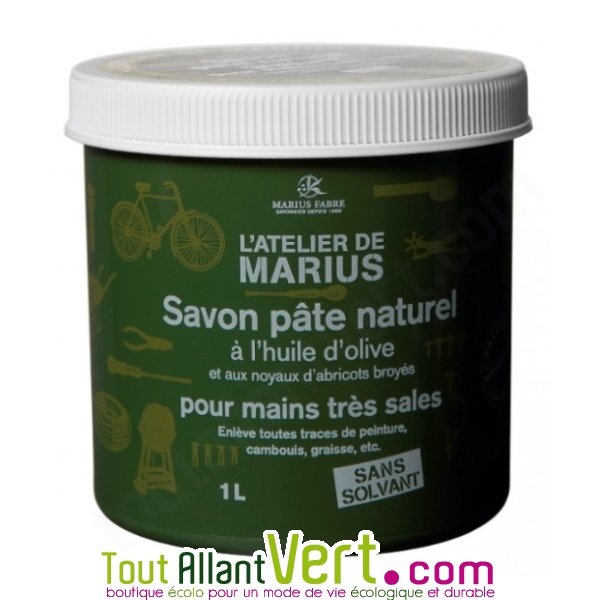 de Marius Fabre★ ★ ★ ★ ★2 avis clientsLe savon du bricoleur au naturel ! A base d'huile d'olive, 100% végétal et biodégradable, ce savon pâte enlève les tâches tenaces (cambouis, peinture, graisse..). Fabriqué en France par Marius Fabre. Pot de 1 litre.