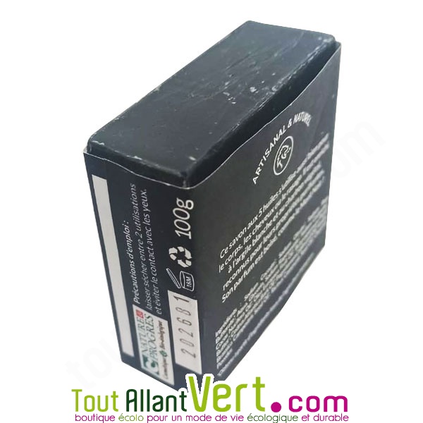 INCI : Sodium Cocoate*, Sodium Olivate*, Sodium Shea Butterate*, Aqua, Glycerin, Sodium Rapeseedate*, Sodium Castorate*, Cocos Nucifera Oil*, Olea Europaea Fruit Oil*, Butyrospermum Parkii Butter*, Cedrus Atlantica Bark Oil*, Pogostemon Cablin Leaf Oil*, Kaolin, Brassica Campestris Seed Oil*, Ricinus Communis Seed Oil*, Charcoal Powder