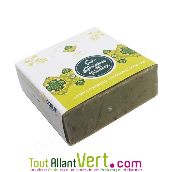 Ce savon naturel qui combine la force du houblon va tonifier votre peau et l'argile verte la purifier. Ses huiles esentielles et végétales bio nourrissent votre peau.