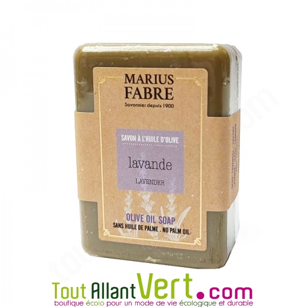 Savon de Marseille à l'huile d'olive. Délicatement parfumé à la Lavande. Enrichi au beurre de karité, il lave sans dessécher la peau. Il est biodégradable. Sans huile de palme, ni colorant. Fabriqué en France par Marius Fabre. 150g