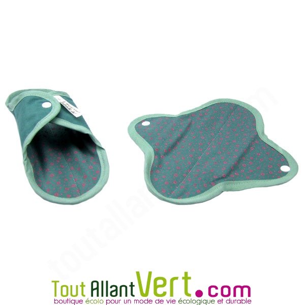 Serviette hygiénique lavable en coton biologique, Mini, Vert, lot de 2