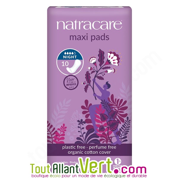 Serviettes hygiéniques naturelles pour la nuit, boite de 10.Serviettes épaisses et extra longue pour être en confiance toute la nuit, même pour les débits importants.