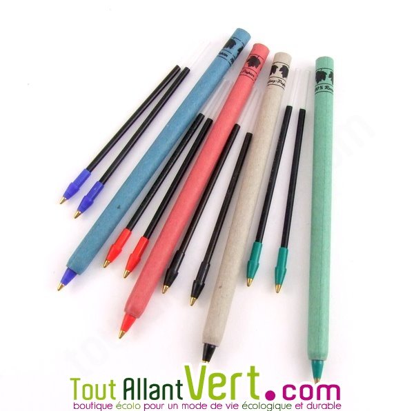 - Tout Allant VertLe stylos en papier recyclé n'ont pas de bouchons.