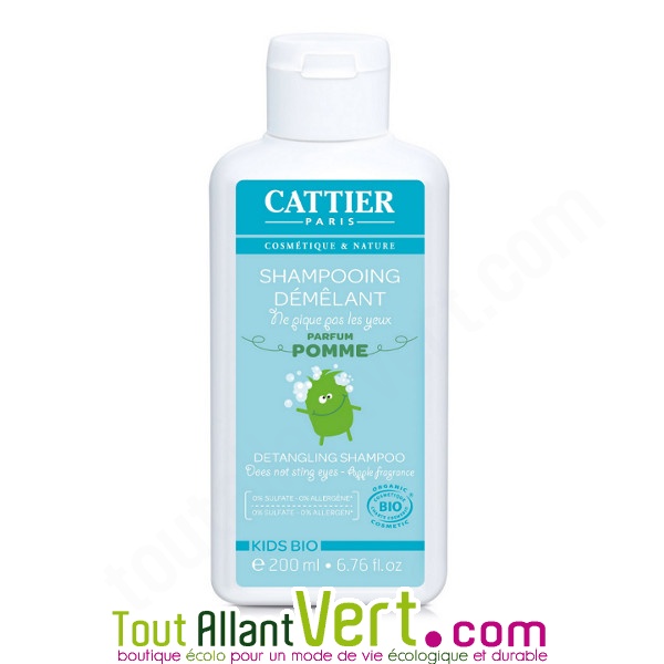 Shampooing démêlant bio enfant, parfum pomme, 200ml, Cattier- Base lavante ultra douce