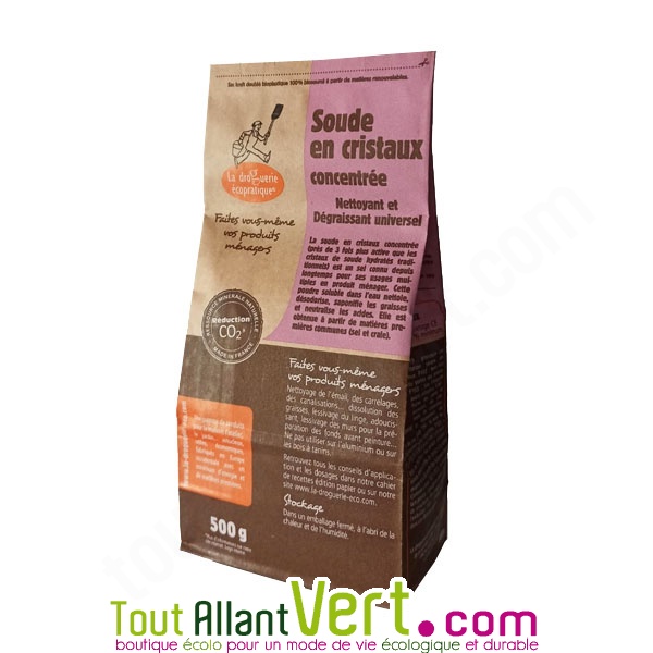 voir les questions/réponses sur ce produitSoude en cristaux ou cristaux de soude, 500g, multi-usages écolo puissant.La soude en cristaux est un nettoyant multi-usage. Vous l'utiliserez dans les cas divers et variés, dans la maison comme à l'extérieur ! Puissant, il s'utilise à petite dose et est donc très économique à l'usage.