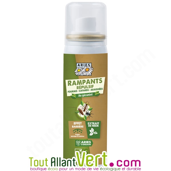 Petit spray contre les insectes rampants : araignées, fourmis, cafards... Il créé une barrière infranchissable pour les insectes rampants. Aux extraits de neem, arbre reconnus pour ses propriétés répulsive. Spray de 50ml. Marque Aries, spécialiste des insecticides naturels. Fabriqué en Allemagne.