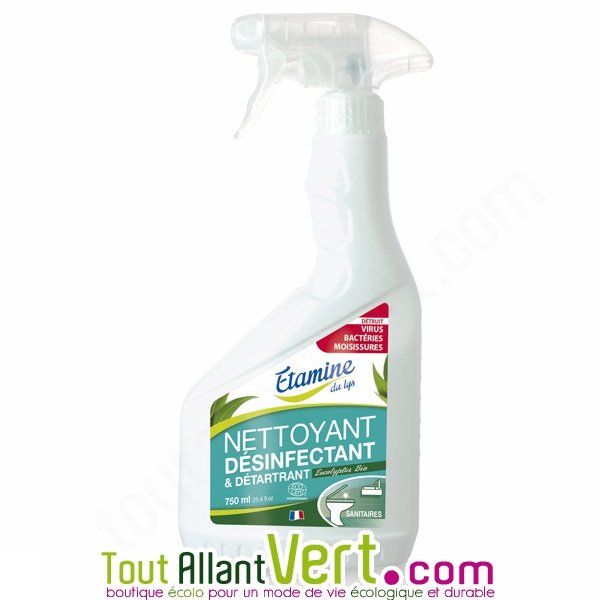 ★ ★ ★ ★ ★13 avis clientsSpray de 750ml pour les toilettes et les WC. Il nettoie, détartre et désinfecte. Parfum 100% naturel à l'eucalyptus bio. Certifié détergeant bio par Ecocert. Fabriqué en France par Etamine du Lys.