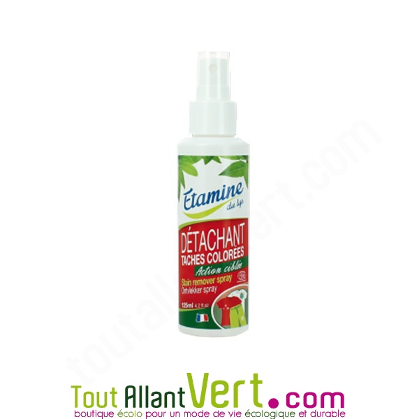 Le spray détachant 125ml d'Etamine du lys permet de nettoyer et d'éliminer toutes les taches dont les taches oxydables comme les fruits, l'encre et l'herbe. Un produit d'entretien naturel adapté aux tissus synthétiques et efficace sur le blanc et les couleurs dès 30°C.
