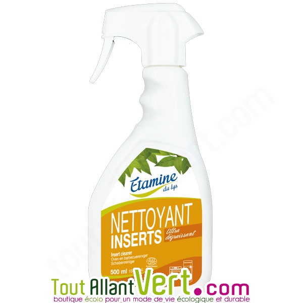 Spécial four, insert, hotte, plaque de cuisson... Il nettoie et dissout les graisses. Il élimine traces de fumée, suie et gras. Marque Etamine du Lys. Certifié par Ecocert. Fabriqué en France.