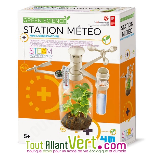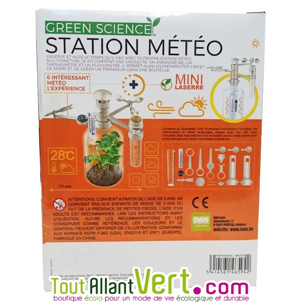 ★ ★ ★ ★ ★1 avis clientsObserve et note le temps qu'il fait avec ta propre station météo multifonction ! Ce jeu permet d'observer, comprendre et expérimenter la météo et l'effet de serre. Il permet aussi de créer un terrarium dans une bouteille pour y faire pousser une plante. Ce kit scientifique incroyable et respectueux de l'environnement contient ...Ce produit ne fait plus partie de notre catalogueCet article n'est plus disponible à la vente chez nous.Découvrez d'autres produits