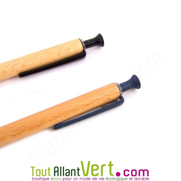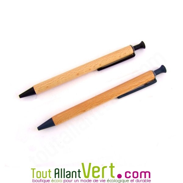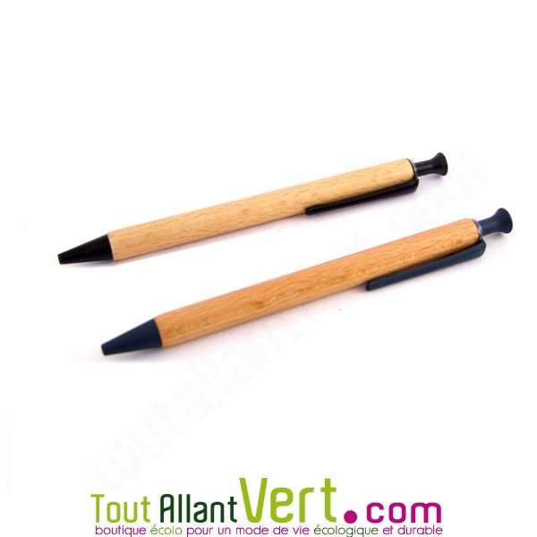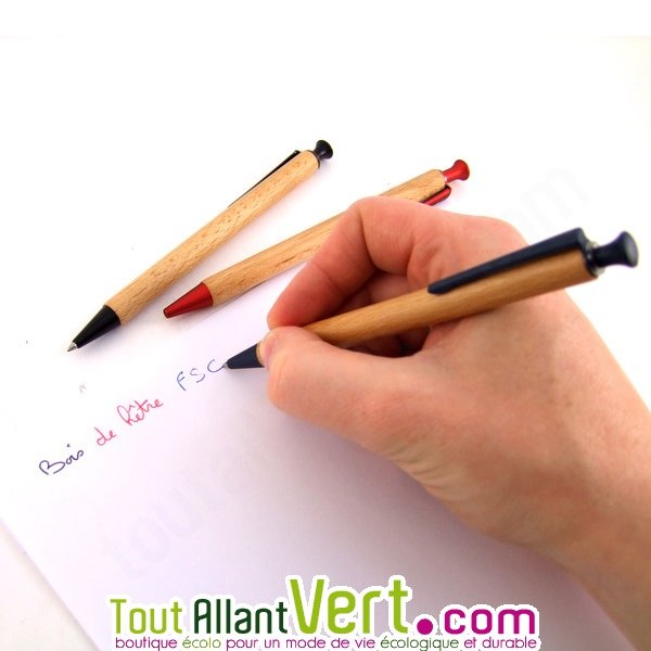 Ce stylo bille rétractable en bois de hêtre est un incontournable. Son accroche et sa pointe sont en métal colorée en bleue, rouge ou noir selon la couleur d'écriture du stylo. Sa fabrication soignée, la beauté et la pureté de sa ligne en font un objet indispensable sur votre bureau qui fera des jaloux autour de vous !
