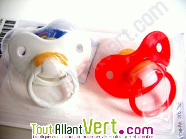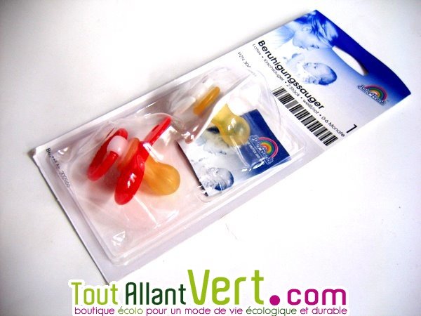 Lot de 2 sucettes pour calmer bébé en latex naturel (sans adjuvants toxiques)En latex naturel, un matériau résistant et élastique Sans adjuvants toxiques Convient aux enfants de 0 à 6 mois Recommandé par le magazine Ökotest Fabrication et qualité AllemandeAvant chaque utilisation, vérifier l'elasticité du caoutchouc. Remplacer la sucette dès les premiers signes d'usure.Cons...Lire la suite...Livraison pour Noël garantie en choisissant Chronorelais pour toute commande payée jusqu'au mardi 23/12 11h00.