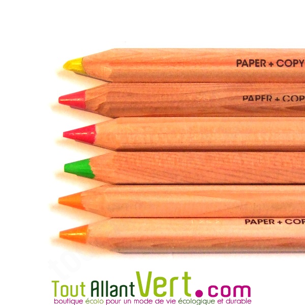 Surligneurs crayons fluo en bois naturel, lot de 6