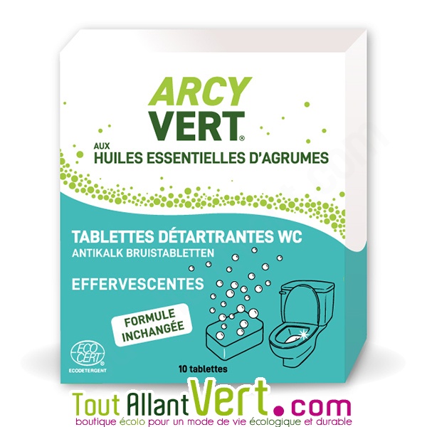 de Arcy Vert★ ★ ★ ★ ★13 avis clientsTablettes pour détartrer les WC. Mettre la tablette dans les WC, laissez agir 30 minutes (ou avant de se coucher le soir). Avec la balayette WC, frottez pour nettoyer tous les recoins. A l'huile d'essentielle orangée. Ecocert.